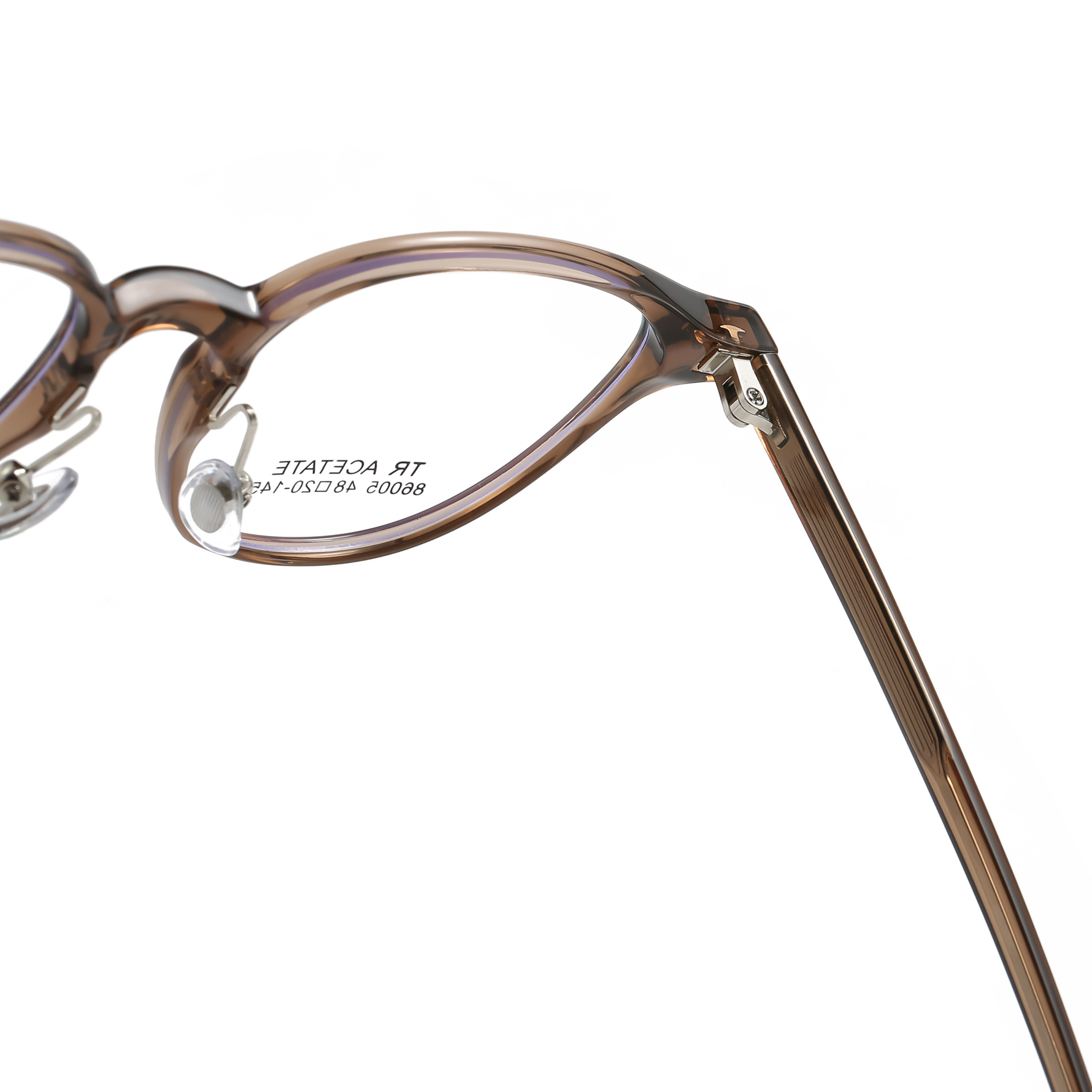 • Temple length: The length of the arms from hinge to tip.